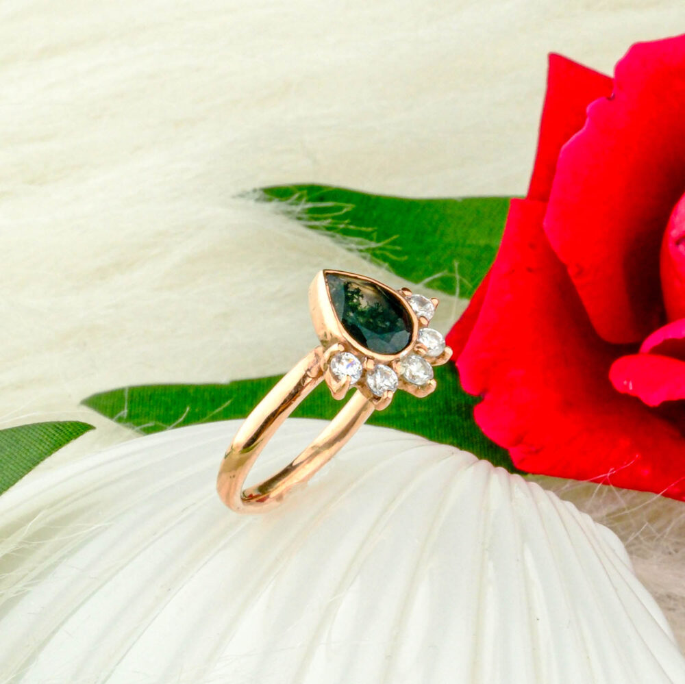 Moss Agate (Yosunlu Akik) Doğal Taş Gümüş Rose Bayan Yüzük