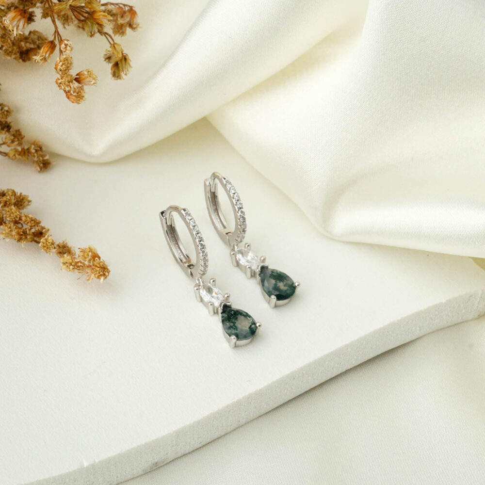 Moss Agate (Akik) Doğal Taş Gümüş Bayan Küpe