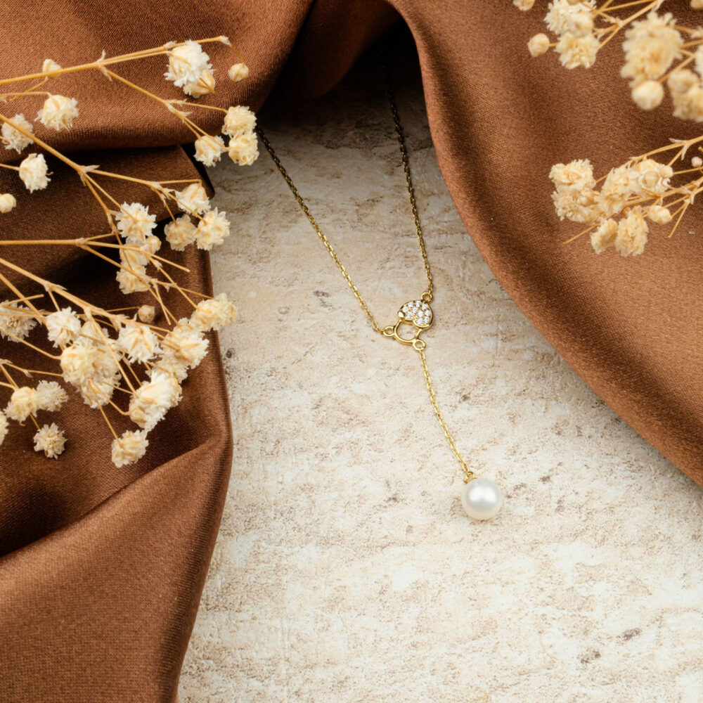 Orijinal Sedef ve İnci Doğal Taş 925 Ayar Gümüş Gold Kolye