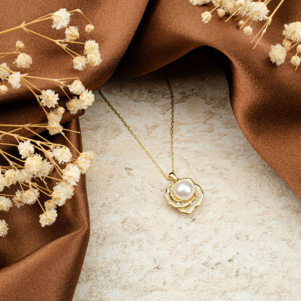 Orijinal Sedef ve İnci Doğaltaş 925 Ayar Gümüş Gold Kolye