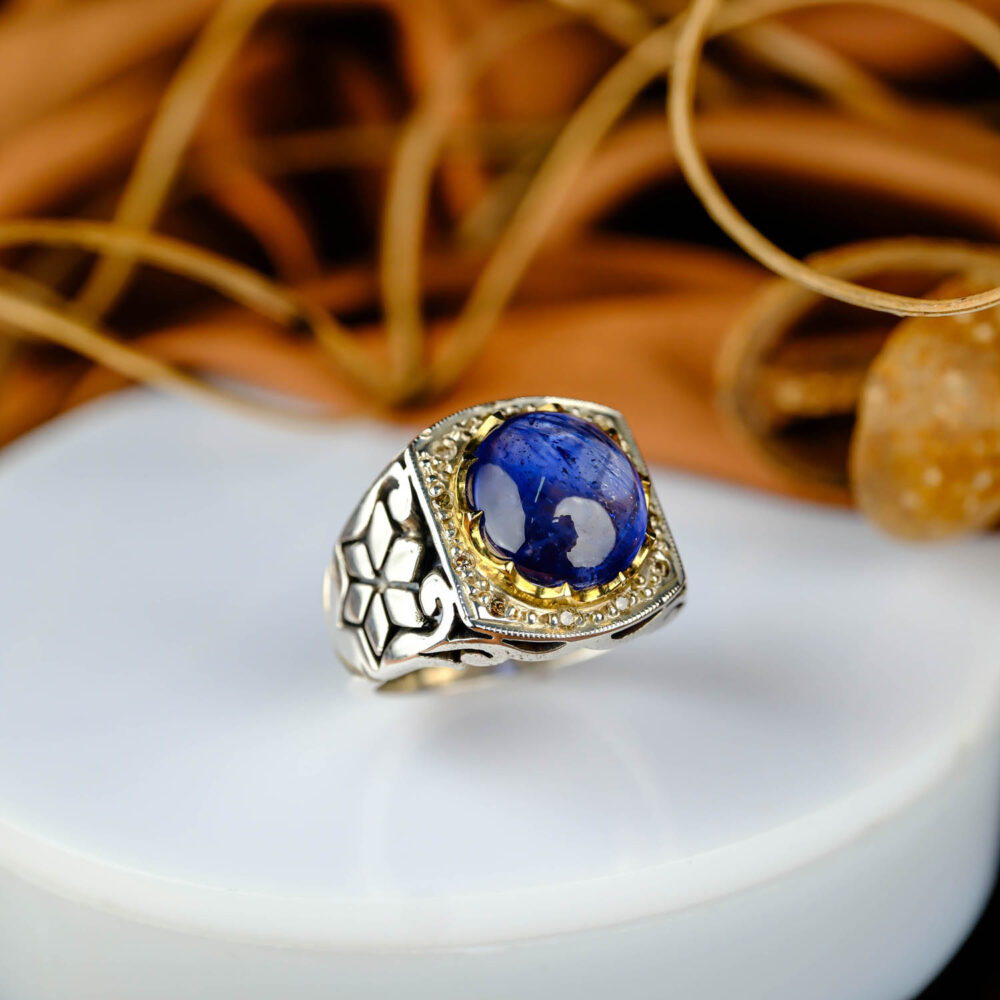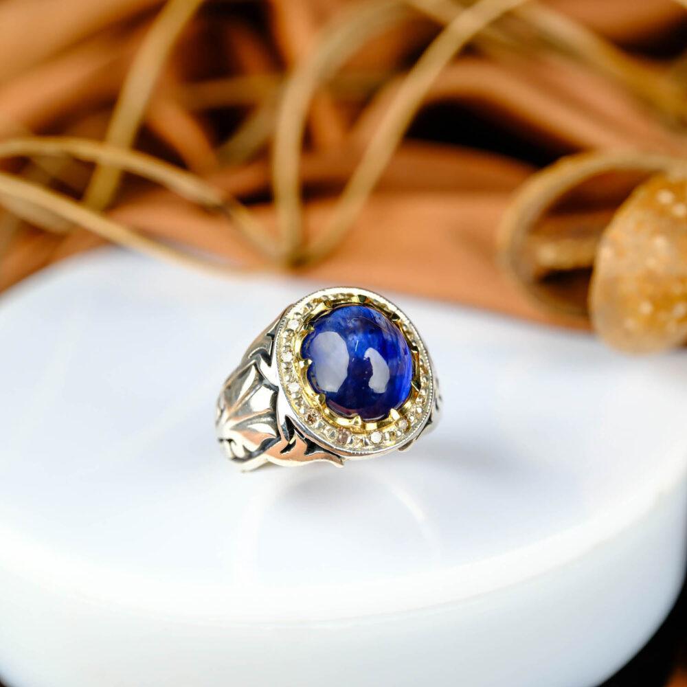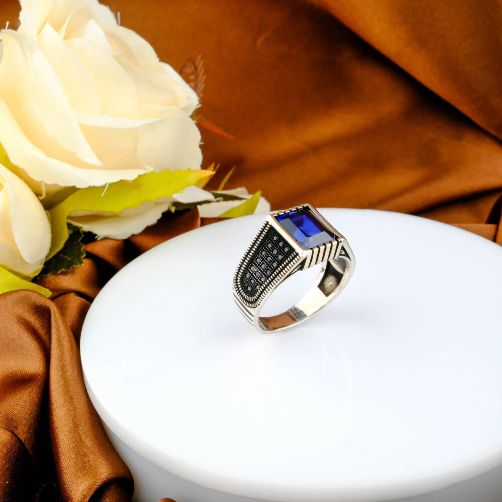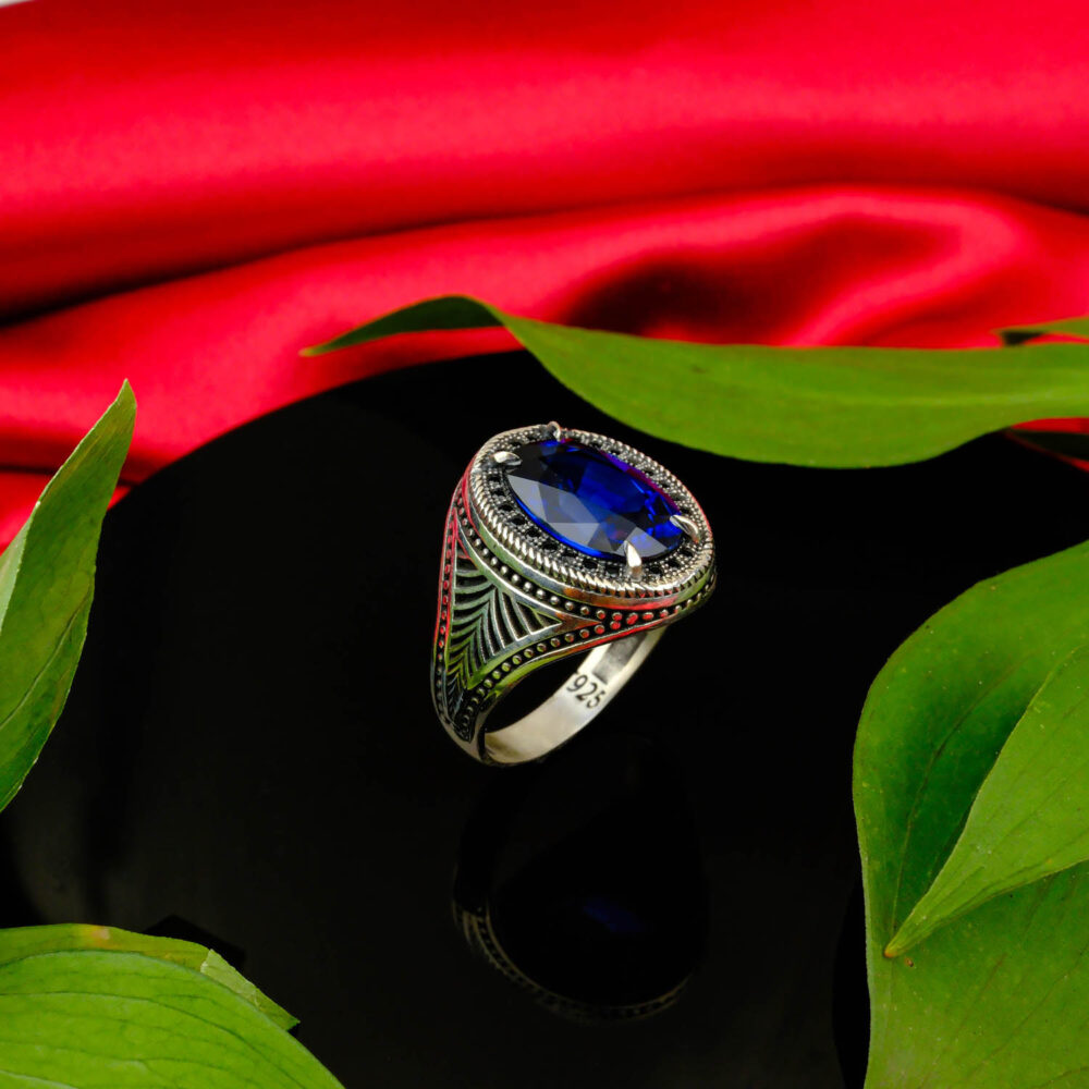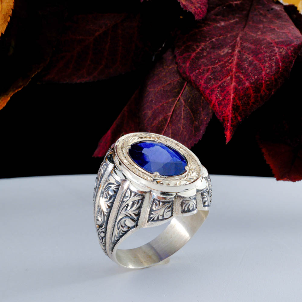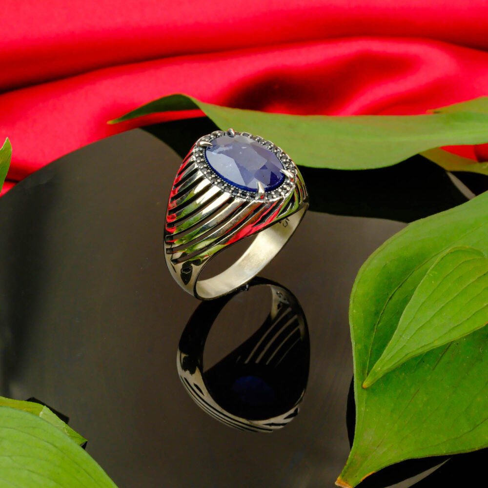 Özel Tasarım Orijinal Safir Doğal Taş Gümüş Erkek Yüzük (5 ct)