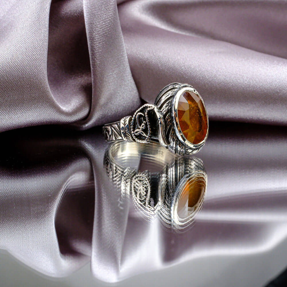 Sarı Safir Doğal Taş Gümüş Erkek Yüzük (15ct)