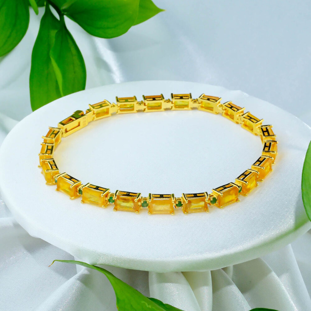 Sarı Safir Zümrüt Doğal Taş Gümüş Gold Bileklik