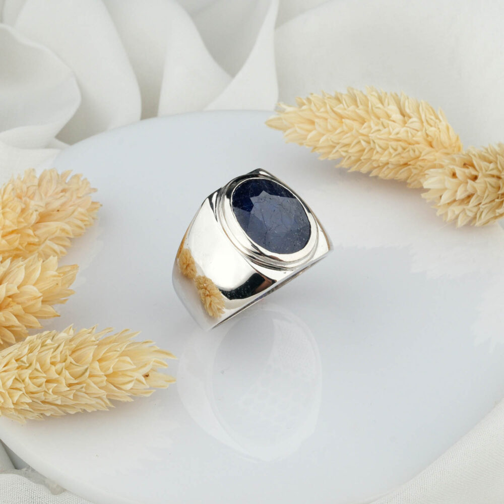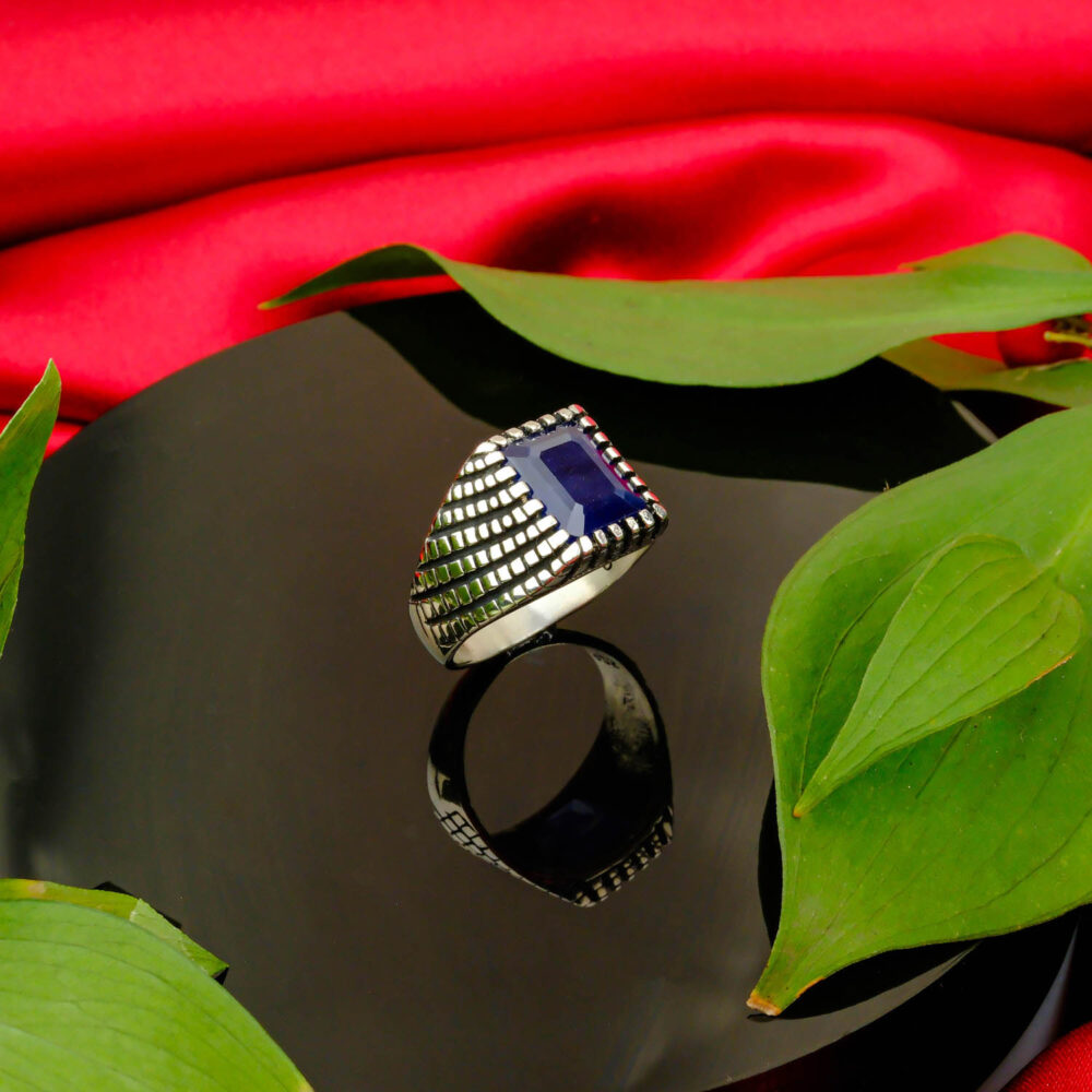 Orijinal Safir Doğal Taş Gümüş Erkek Yüzük (18 ct)