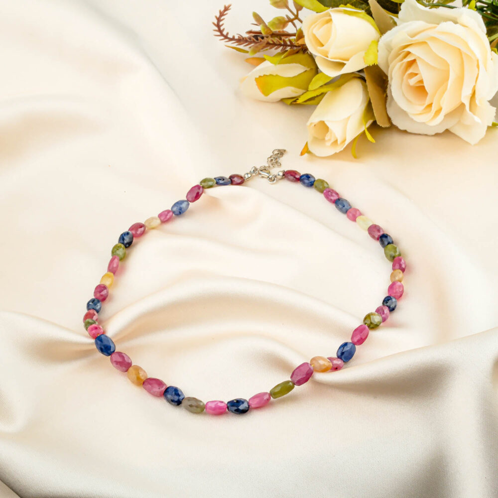 Renkli Safir Doğal Taş Gümüş Bayan Kolye