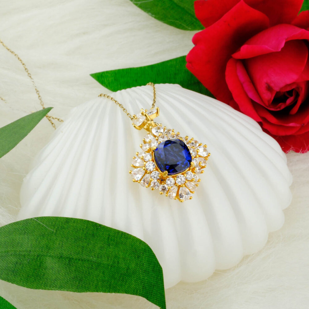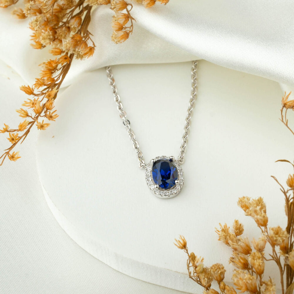 Orijinal Safir Kristali Gümüş Bayan Kolye (3ct)