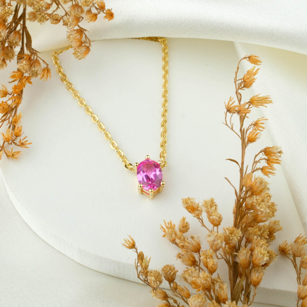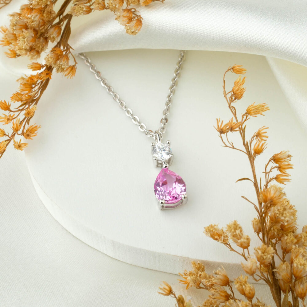 Pembe Safir Doğal Taş Gümüş Bayan Kolye