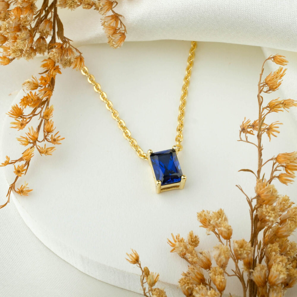 Orijinal Safir Doğal Taş Küp Model Bayan Kolye (2-3mm)