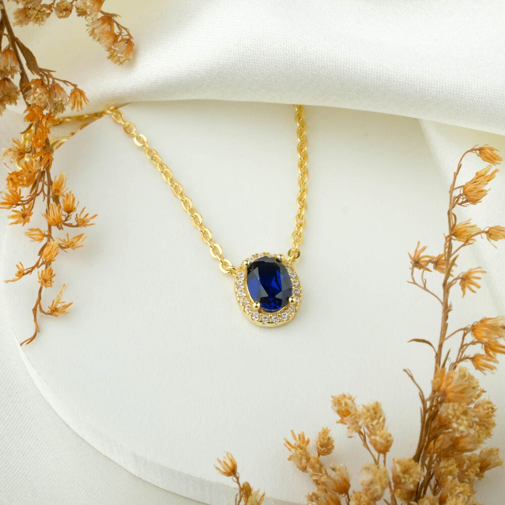Safir Doğal Taş Gümüş Gold Bayan Kolye