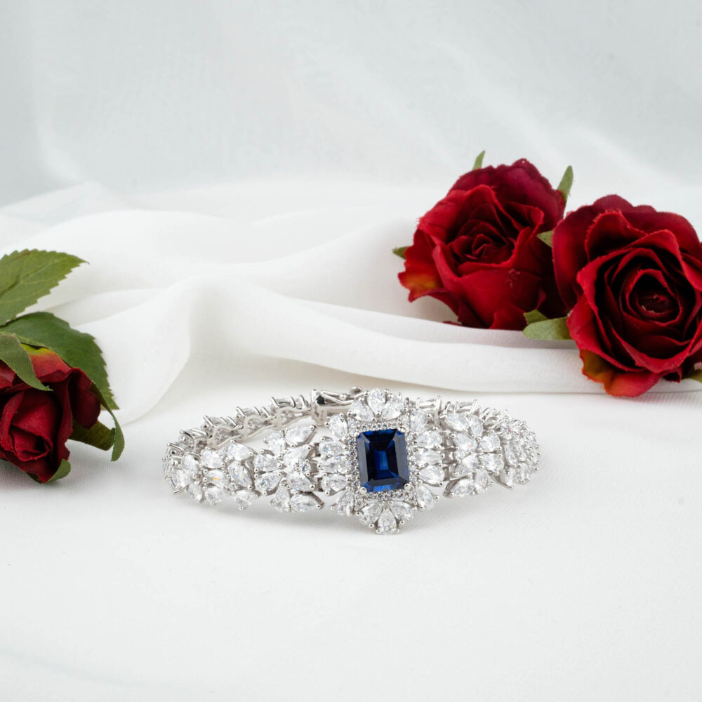 Swarovski Taş Süslemeli Safir Doğal Taş Gümüş Bileklik (4,46ct)