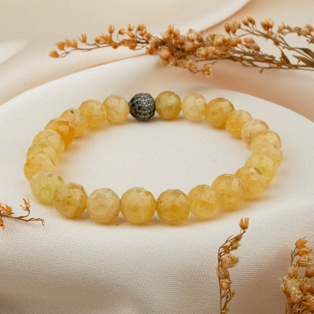 5A+Kalite Sarı Safir Doğal Taş Bileklik (7-8mm)