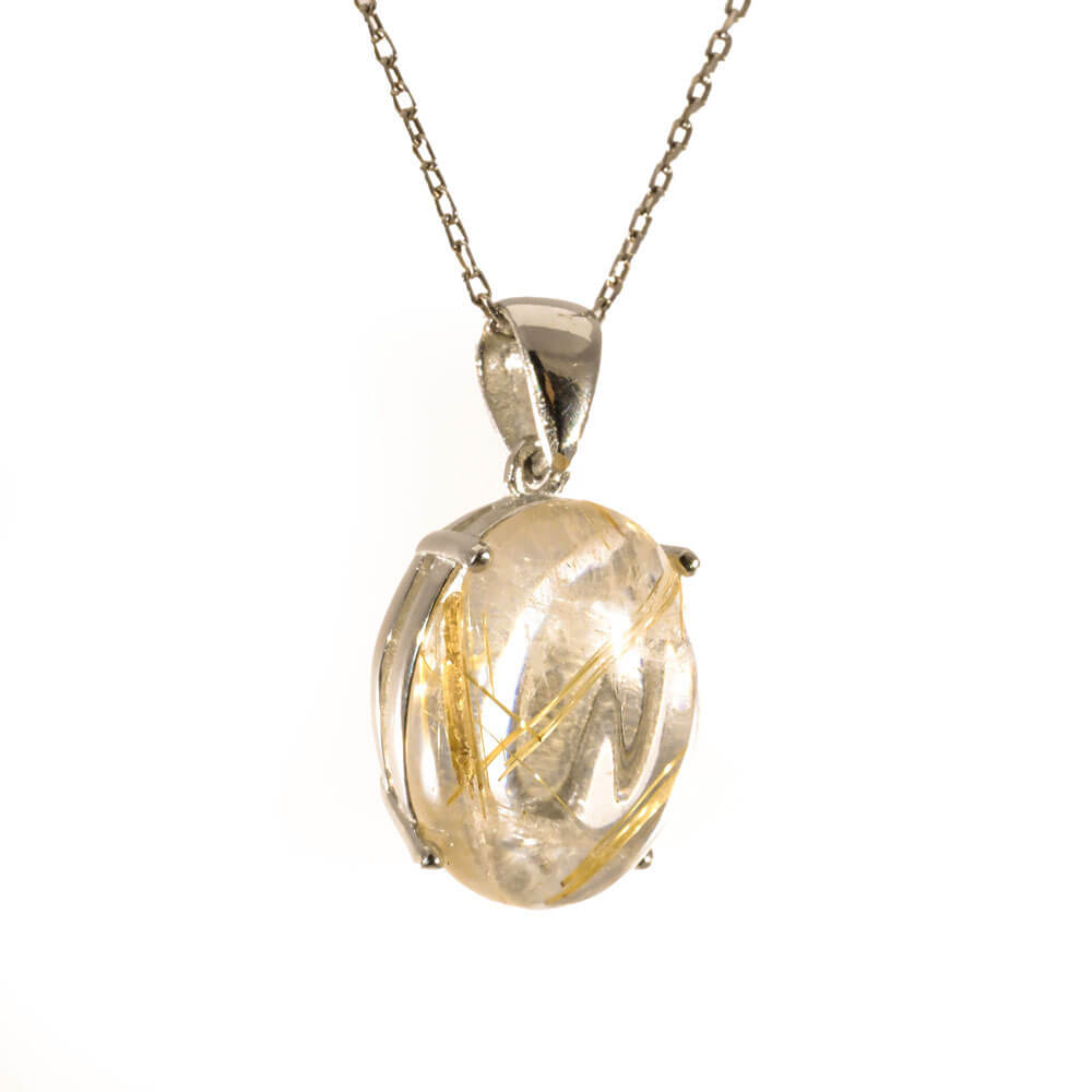 Altın Rutil Kuvars Doğal Taş Gümüş Bayan Kolye