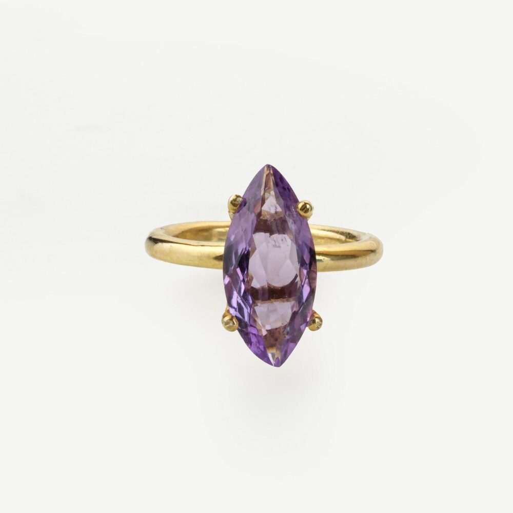 Markiz Model Ametist Taşı 925 Ayar Gümüş Gold Yüzük
