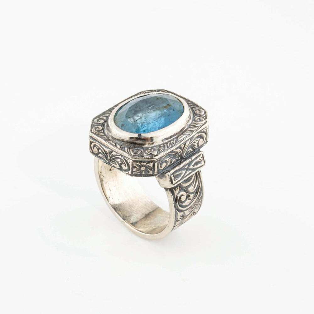 Orijinal Akuamarin Taşı 925 Ayar Gümüş El İşçiliği Erkek Yüzük
