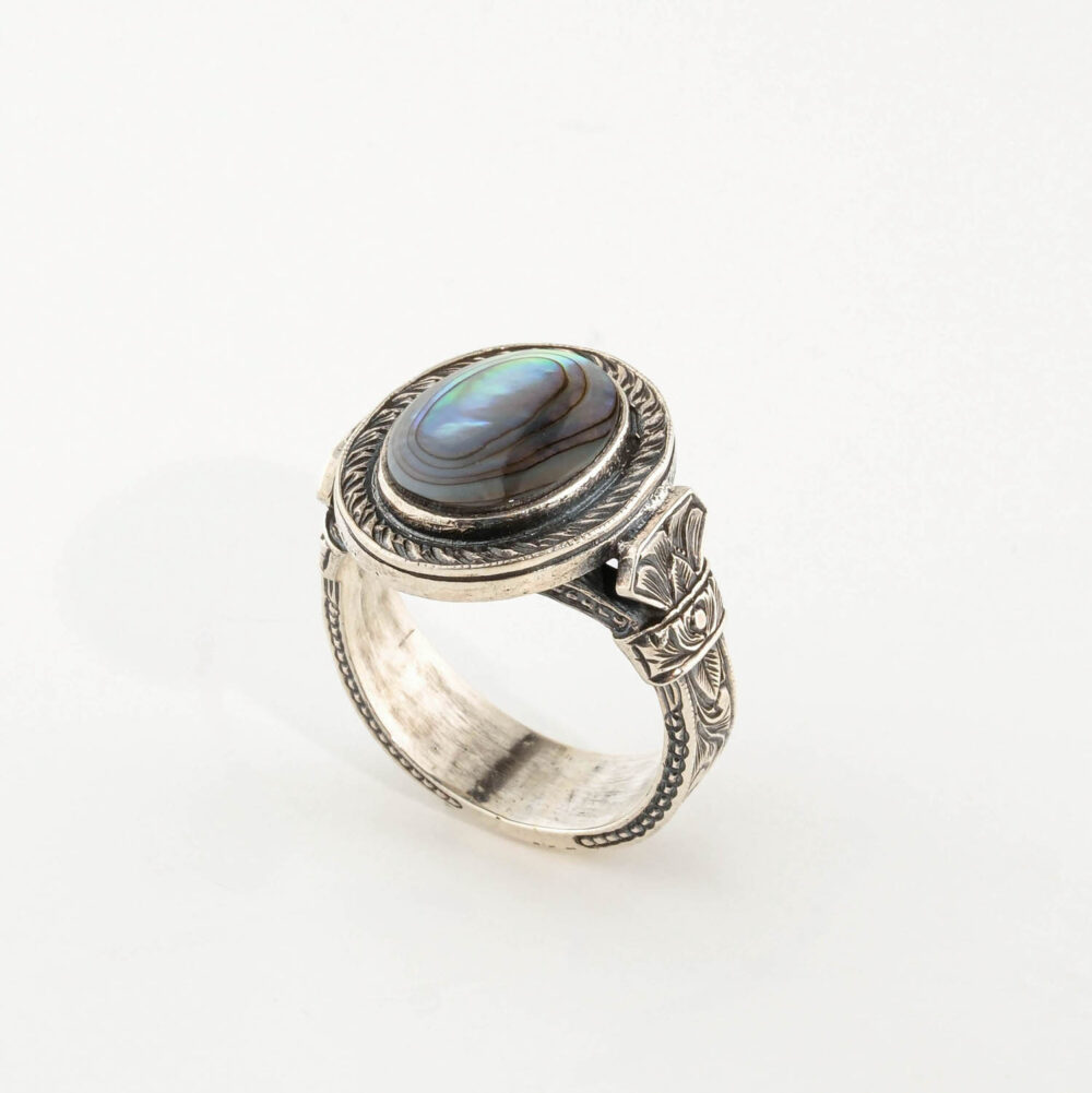 Orijinal Okyanus Sedef Taşı 925 Ayar Gümüş El İşçiliği Uniseks (Kadın/Erkek) Yüzük