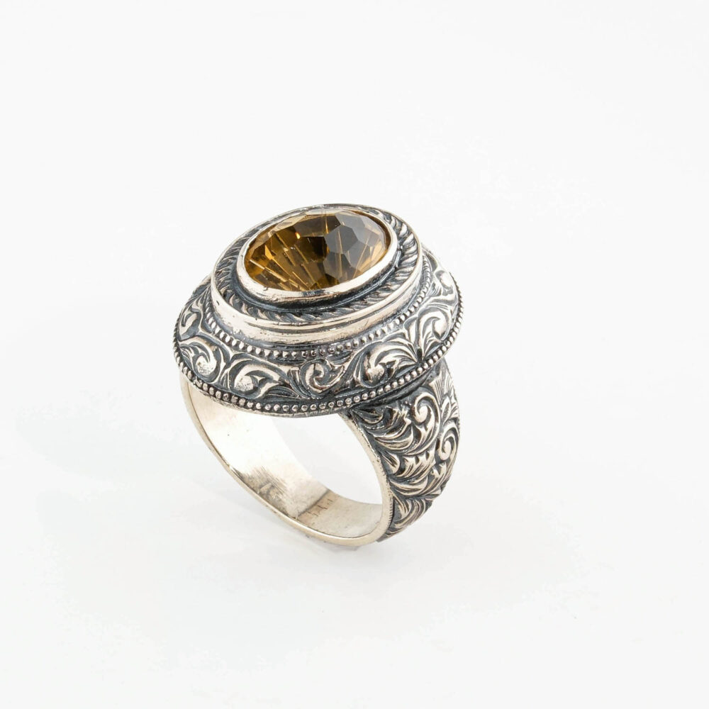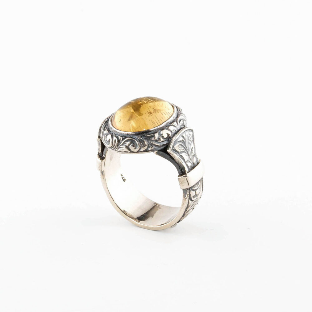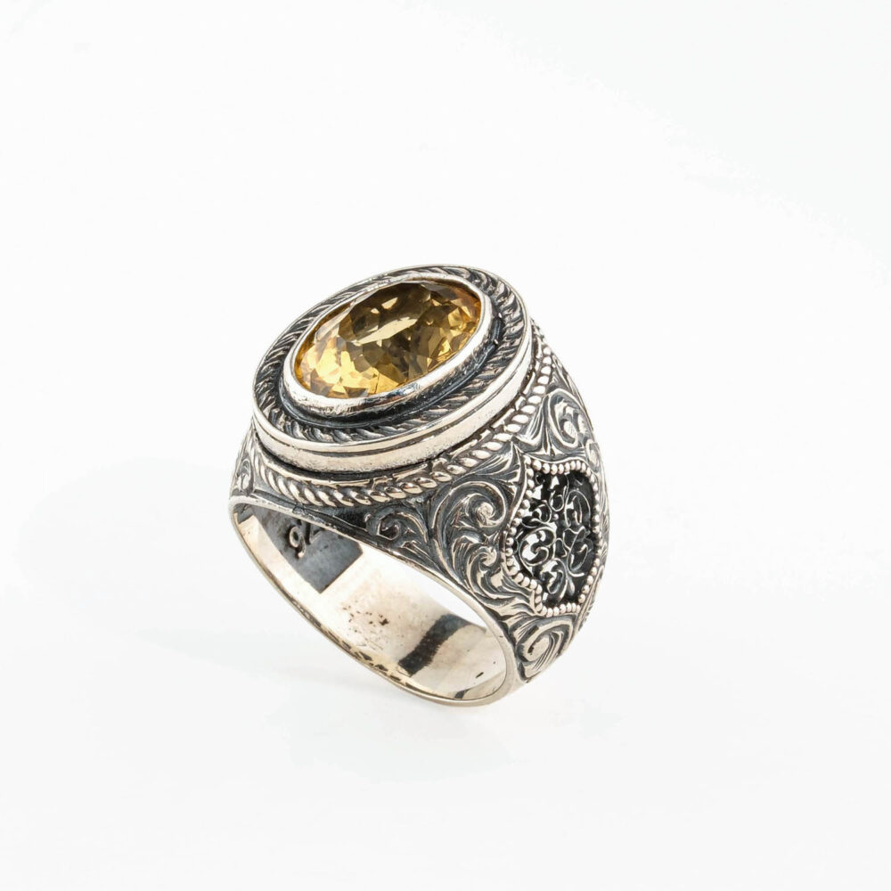Özel Sitrin Taşı 925 Ayar Gümüş El İşçiliği Erkek Yüzük