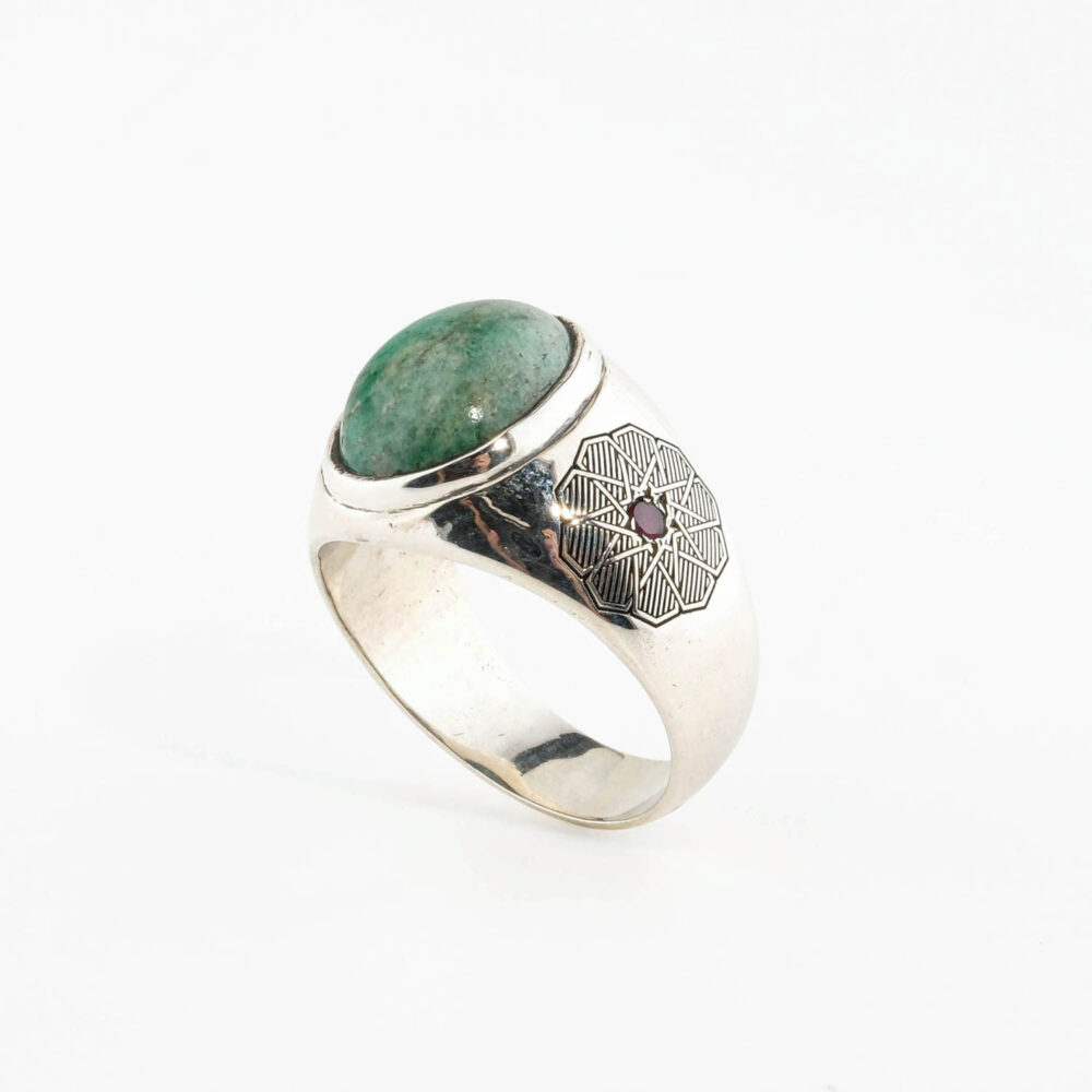 Orijinal Zümrüt Taşı 925 Ayar Gümüş El İşçiliği Erkek Yüzük