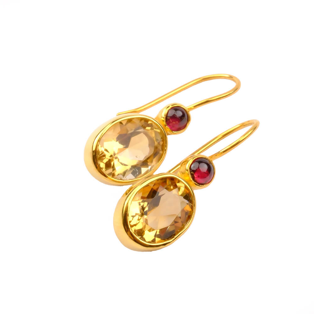 Sitrin Lal (Garnet) Doğal Taş Gümüş Gold Küpe