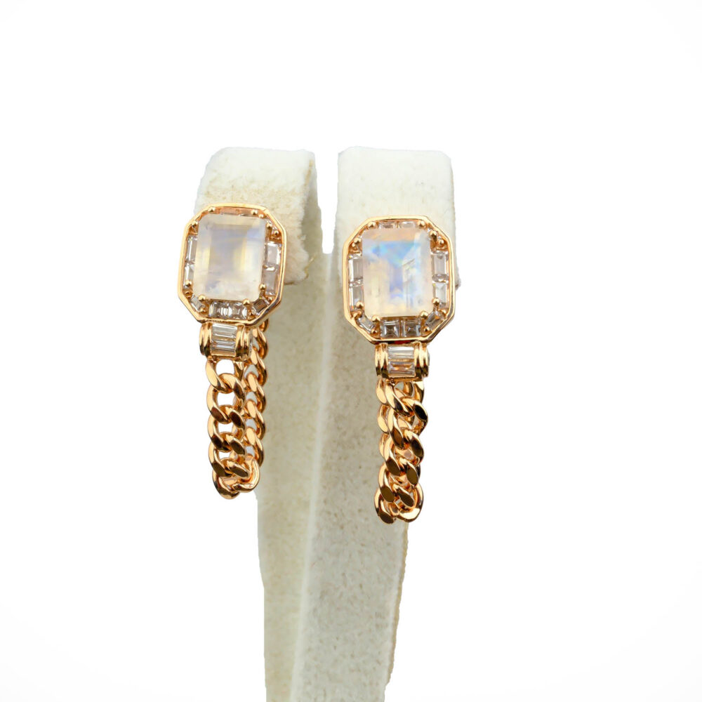 Ay Taşı Doğal Taş Gümüş Rose Küpe