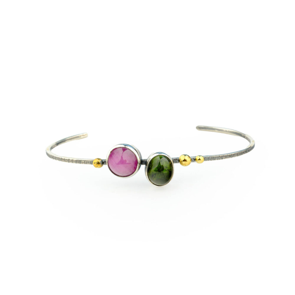 Yakut Turmalin Doğal Taş Gümüş Bileklik (Kelepçe)