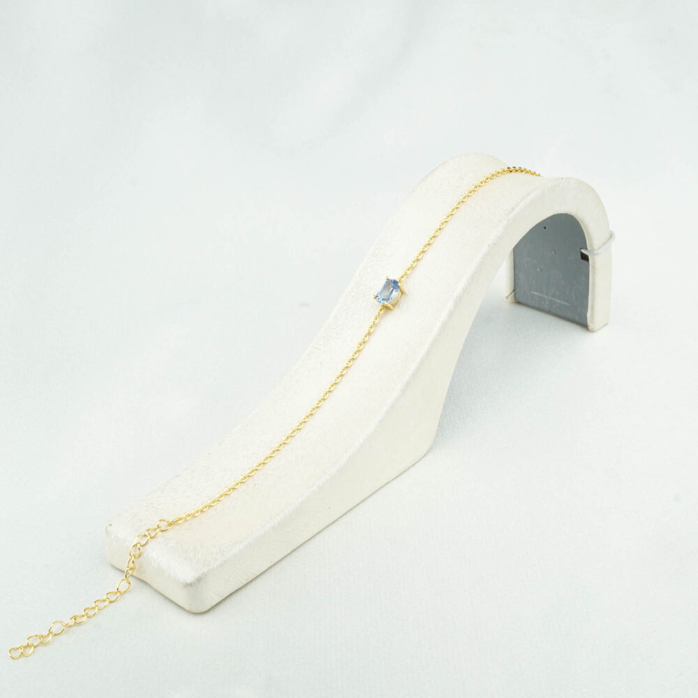 Blue Topaz Doğal Taş Gümüş Gold Bileklik
