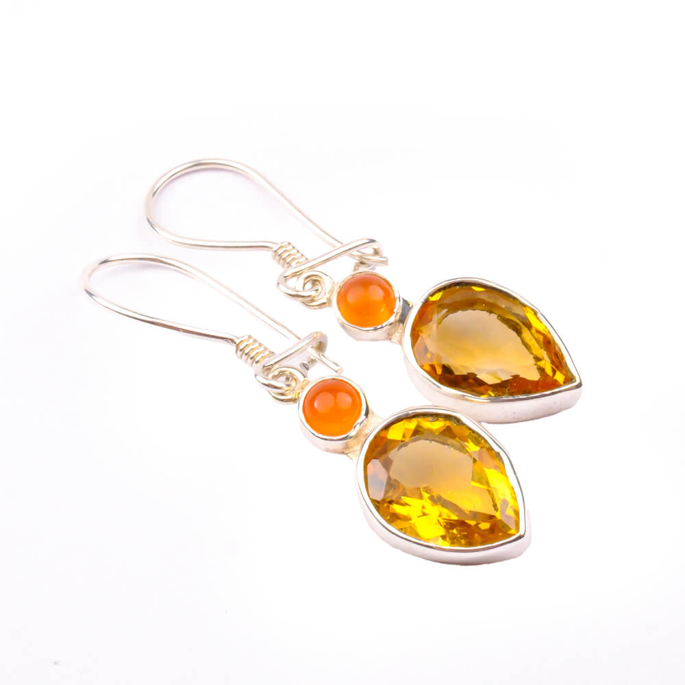 Sitrin Karnelyan Akik Doğal Taş Gümüş Küpe