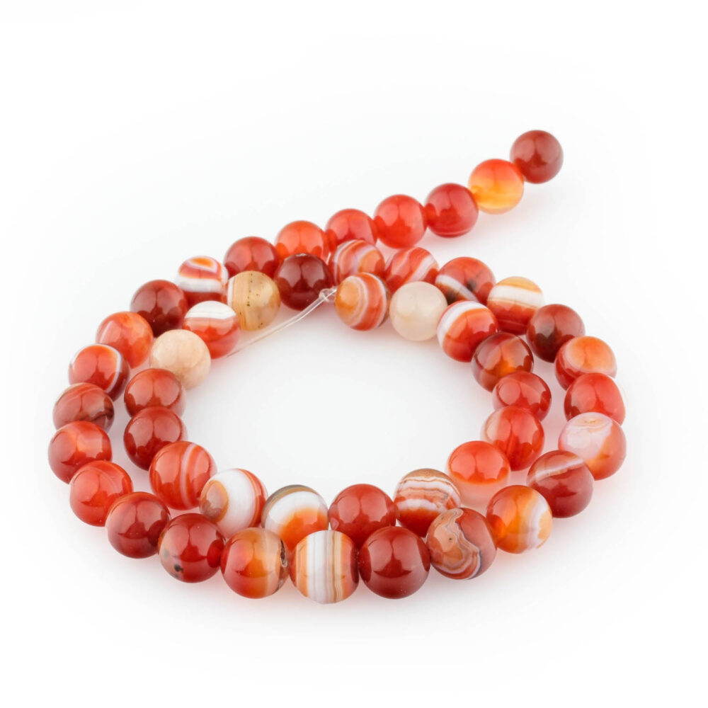 Kırmızı Beyaz Damarlı Akik Doğal Taş Dizi (8mm)