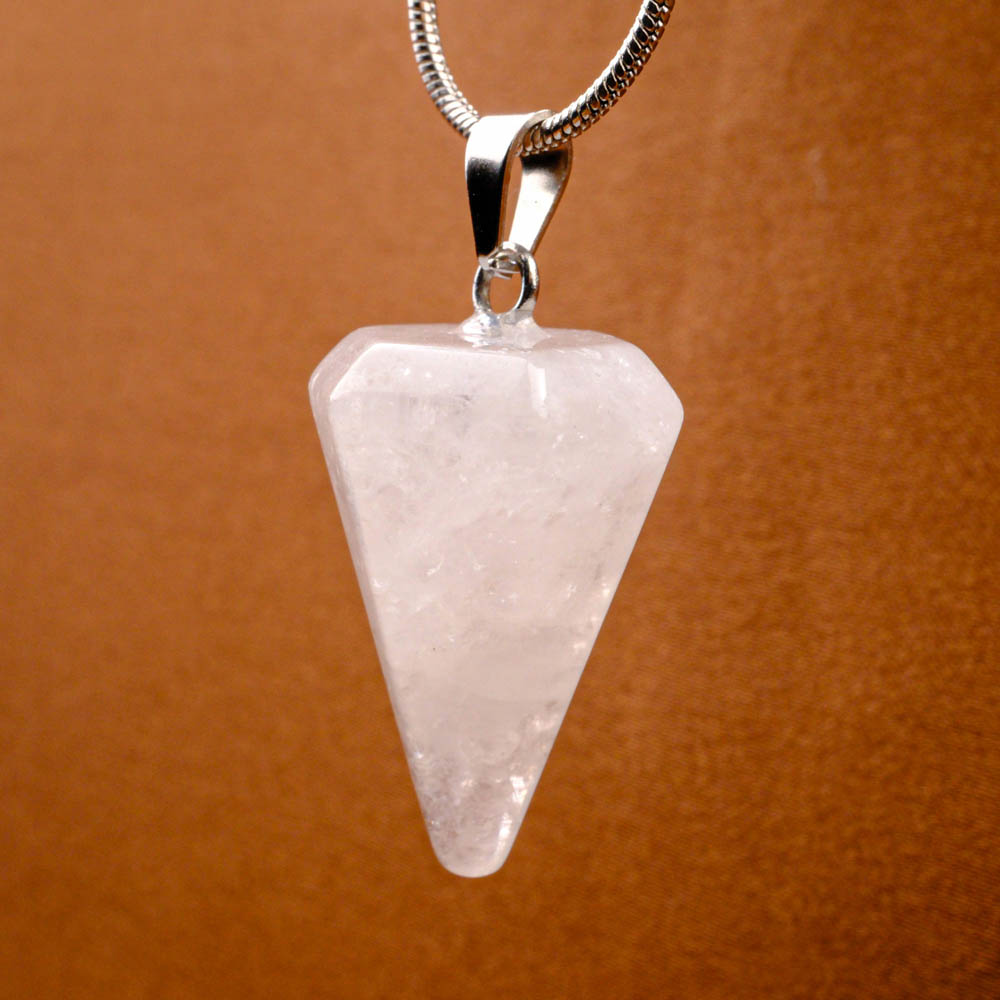 Kristal Kuvars Doğal Taş Metal Kolye (Büyük Boy)