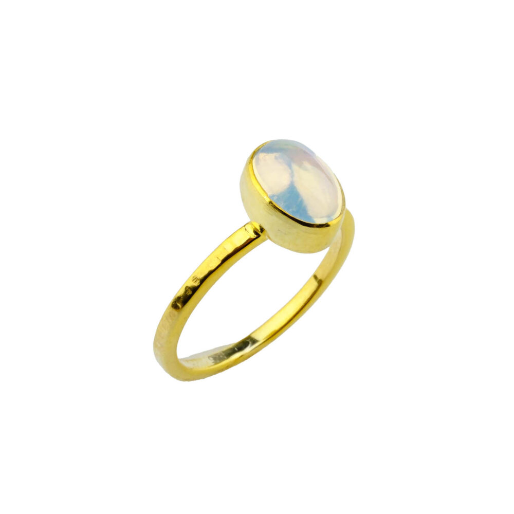 Opal Doğal Taş Gümüş Gold Bayan Yüzük