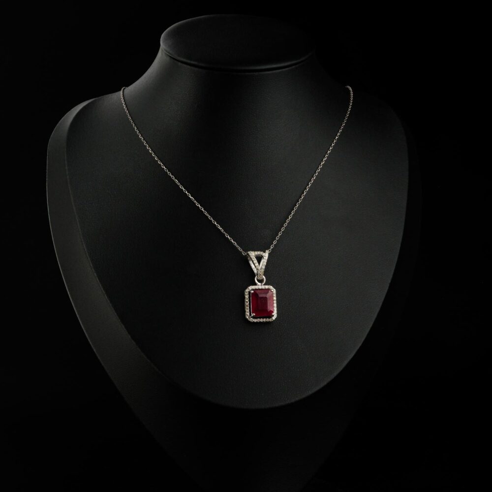 Orijinal Yakut ve Elmas Taşı 925 Ayar Gümüş Tasarımlı Kolye