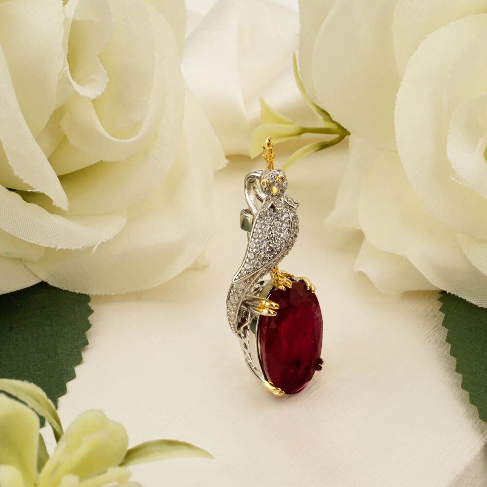 Özel Tasarım Orijinal Yakut Taşı 925 Ayar Gümüş Kuş Figürlü Kolye