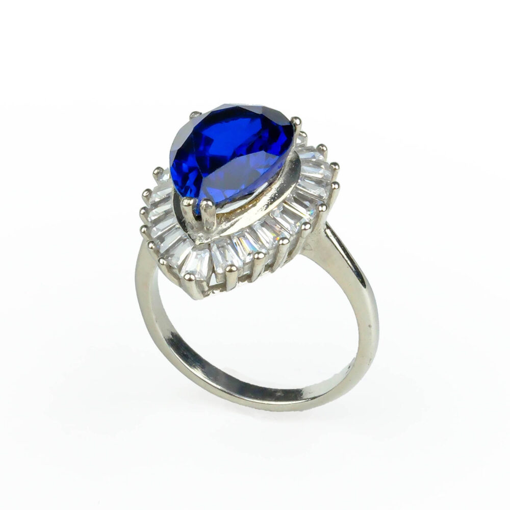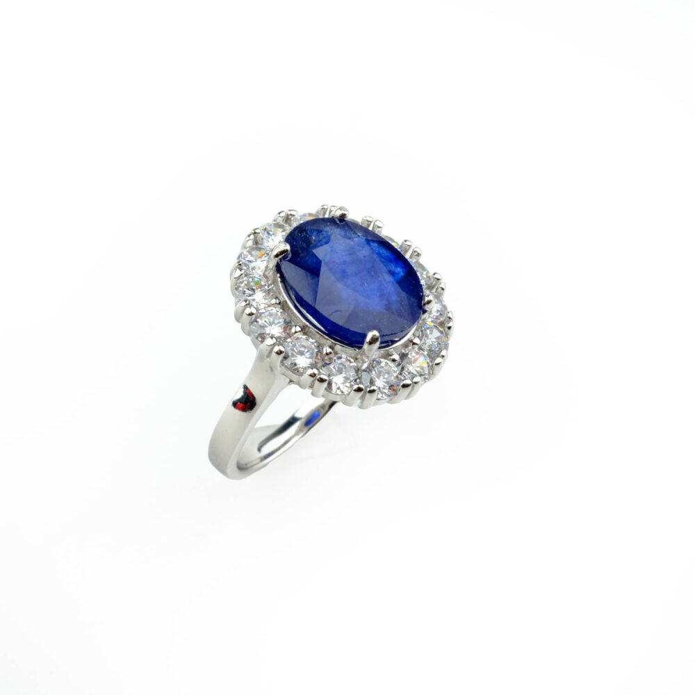 Mavi Safir Doğal Taş Gümüş Bayan Yüzük (3ct)