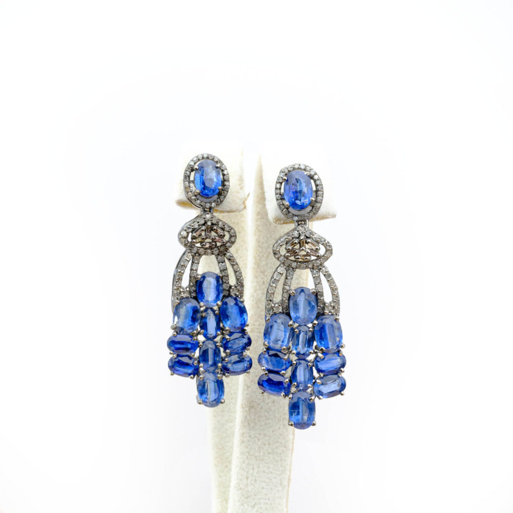Orijinal Natural Safir-Kyanit ve Elmas Doğal Taş Gümüş Küpe
