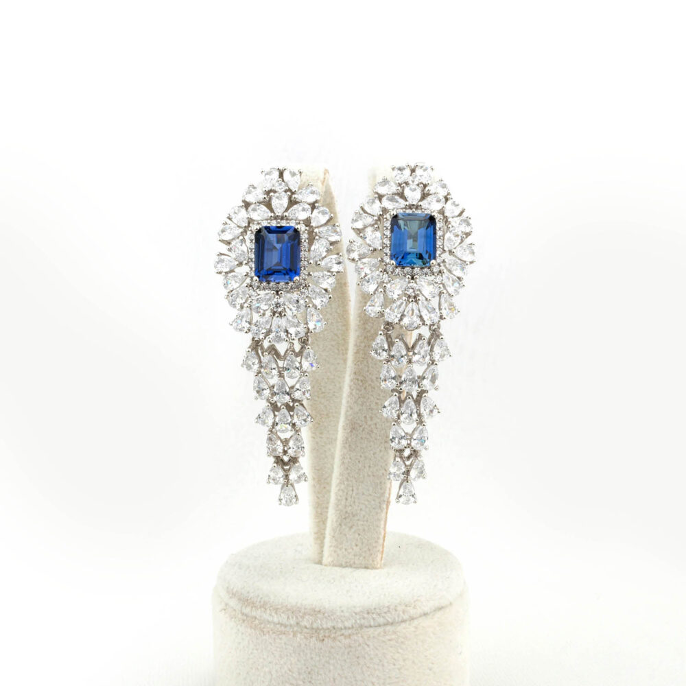 Orijinal Natural Özel Tasarım Safir Doğal Taş Gümüş Küpe (9ct)