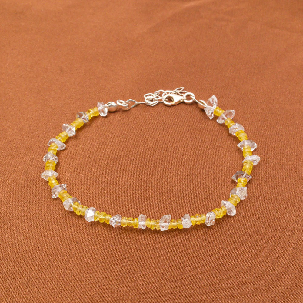 Herkimer Diamond (Elmas) Sarı Safir Doğal Taş Gümüş Bileklik