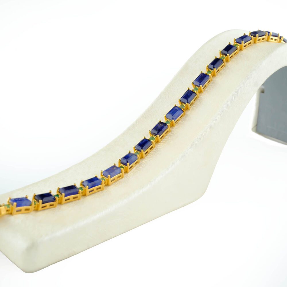 Safir Zümrüt Doğal Taş Gümüş Gold Bileklik