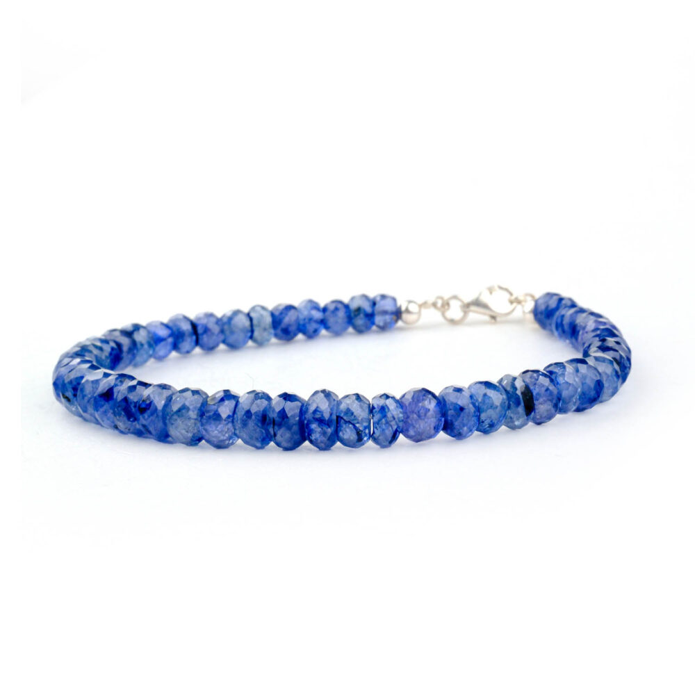 5A Kalite Safir Doğal Taş Rondel Kesim Süzme Gümüş Bileklik (5-6mm)