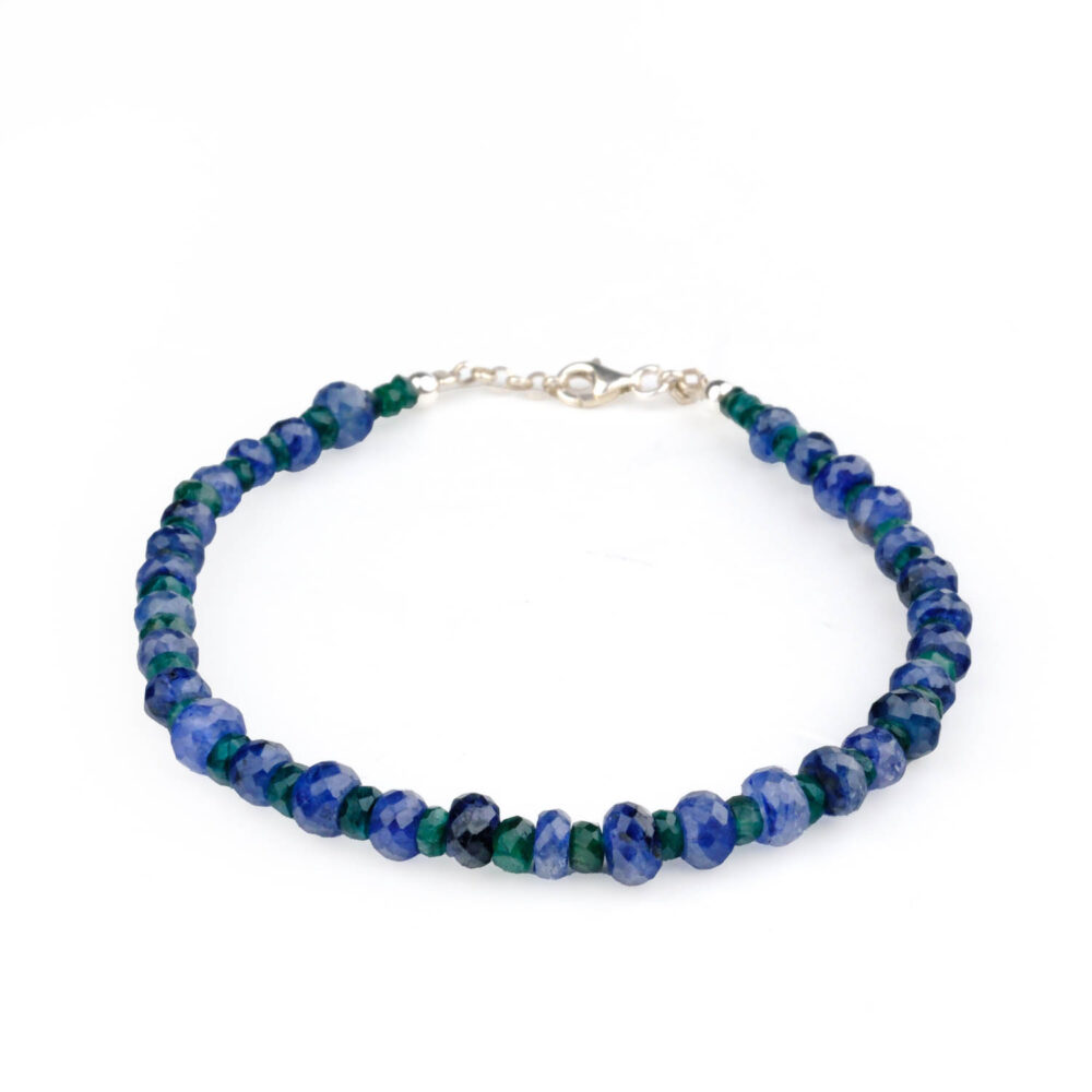 Safir Zümrüt Doğal Taş Rondel Kesim Gümüş Bileklik