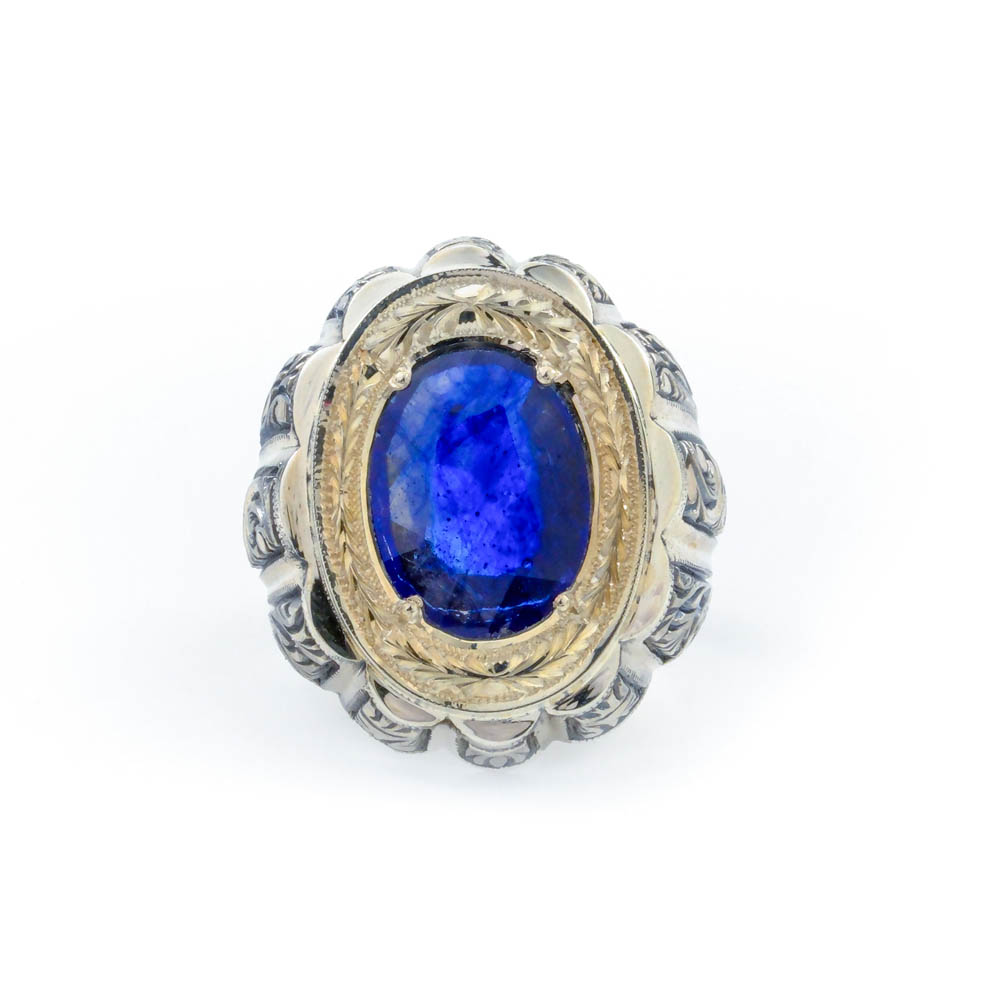 Orijinal Safir Doğal Taş Gümüş Erkek Yüzük (4.33 ct)