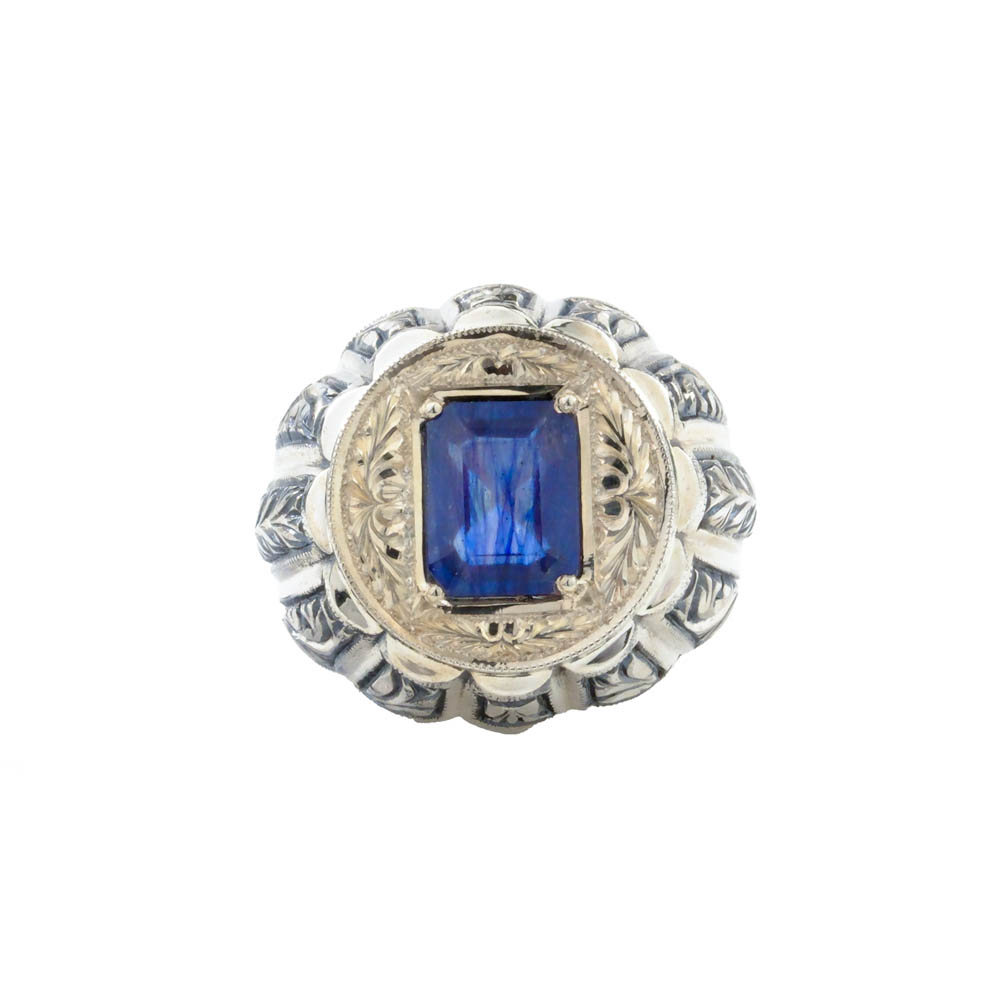 Özel Tasarım Orijinal Safir Doğal Taş Gümüş Erkek Yüzük (4 ct)