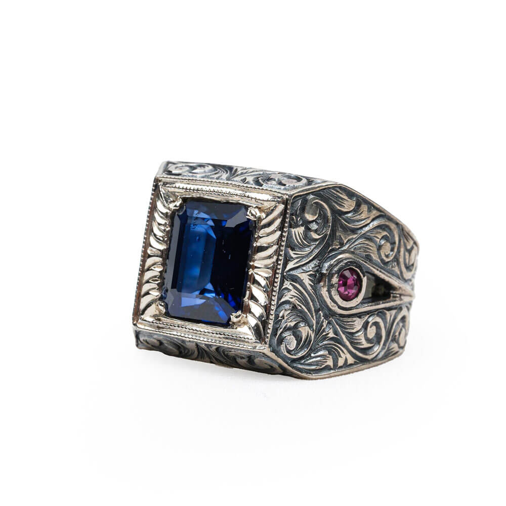 Orijinal Safir Doğal Taş Gümüş Erkek Yüzük (4ct)