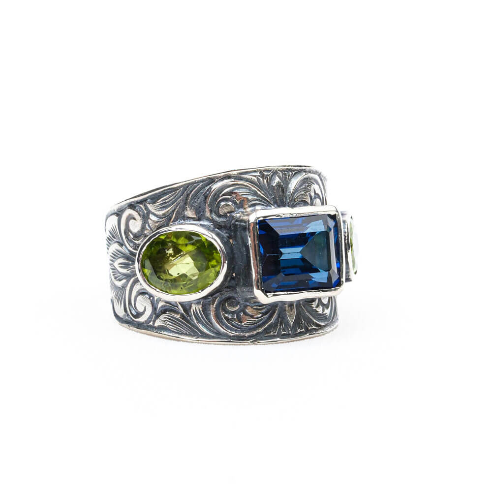 Orijinal Safir Zebercet(Peridot)Doğal Taş Gümüş Unisex Yüzük