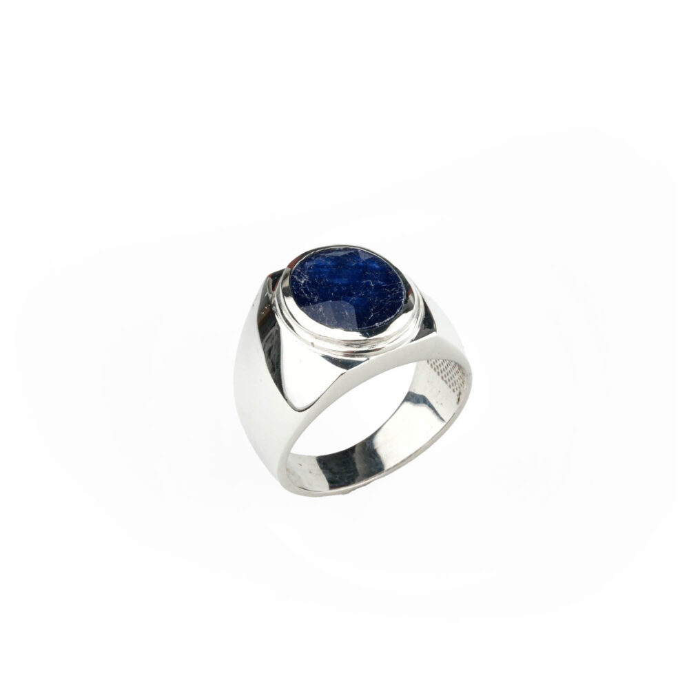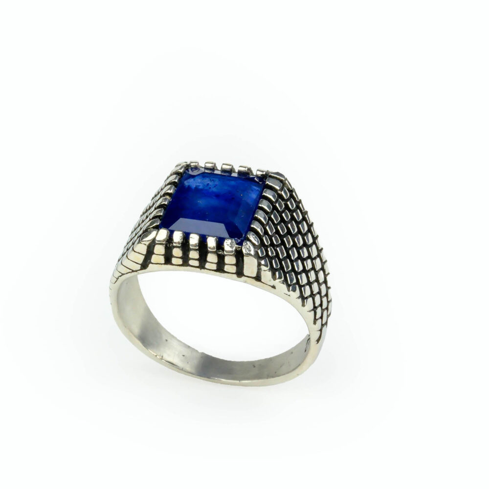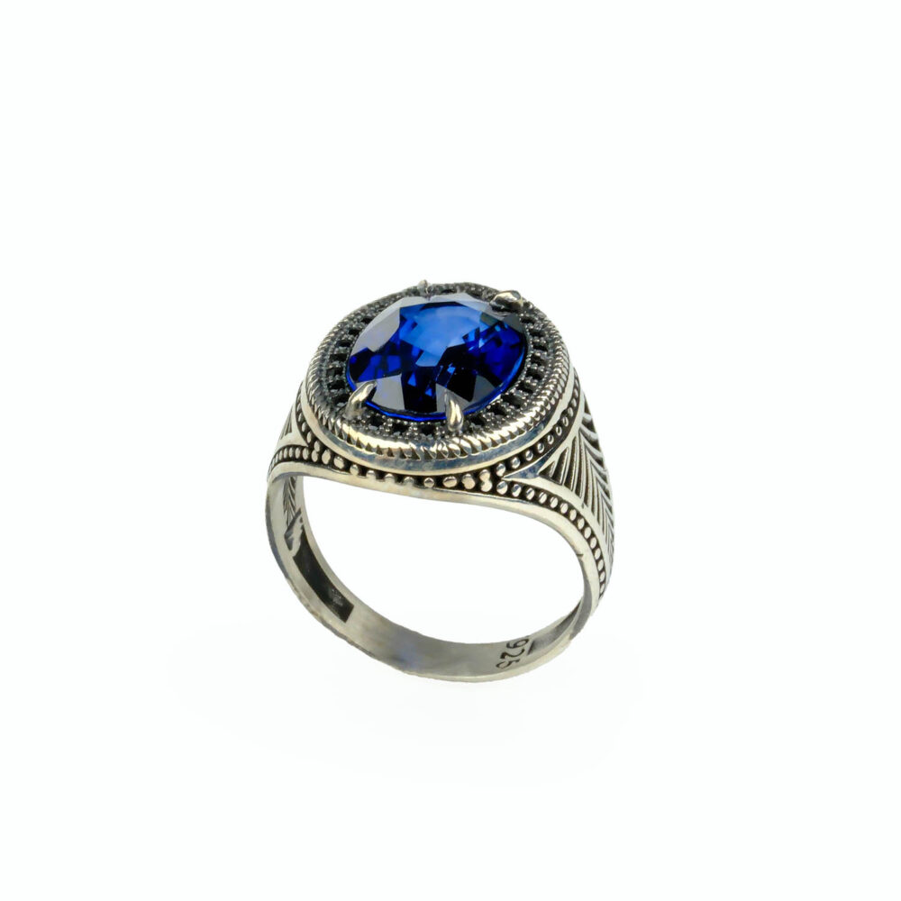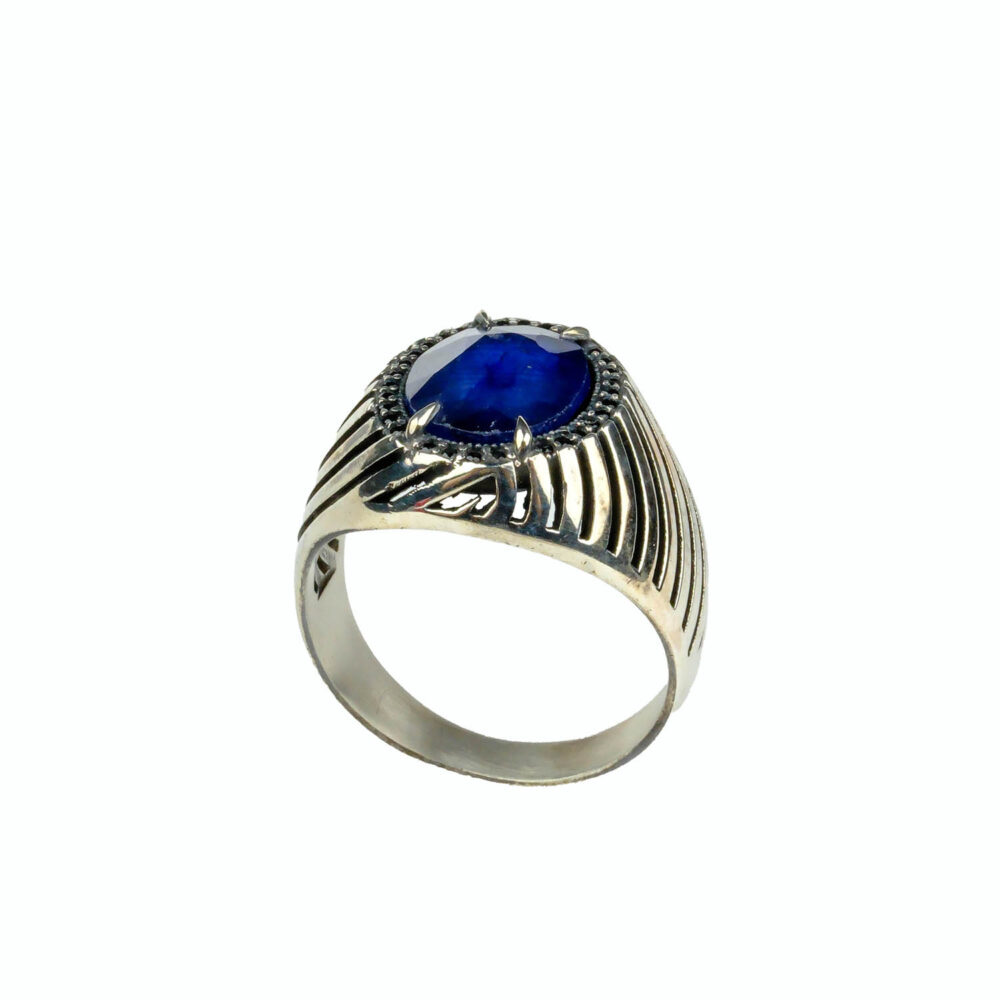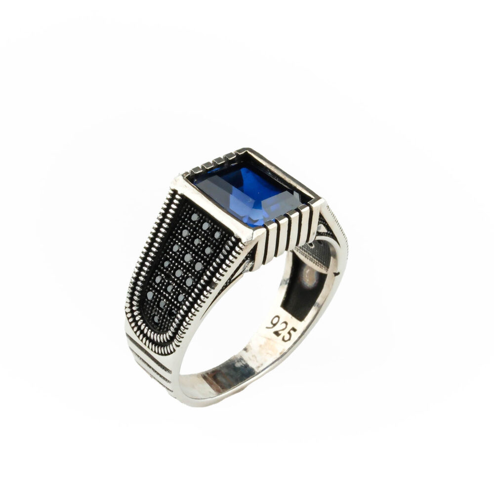 Orijinal Safir Doğal Taş Gümüş Erkek Yüzük (18 ct)
