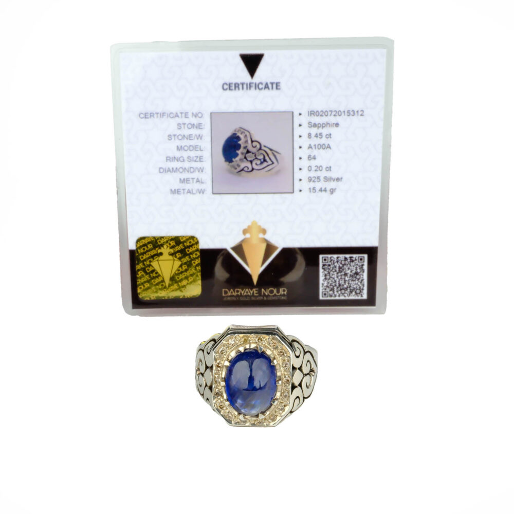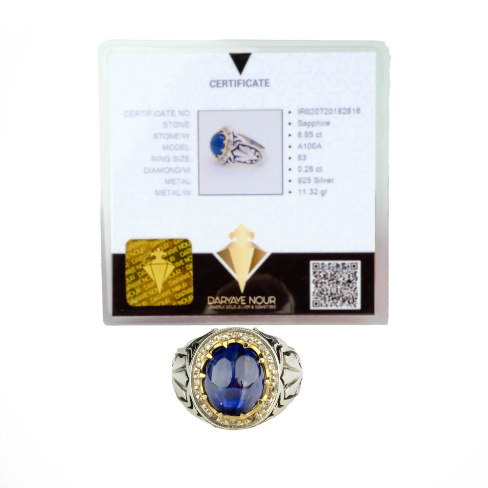 Özel Tasarım Orijinal Safir Doğal Taş Gümüş Erkek Yüzük (5 ct)