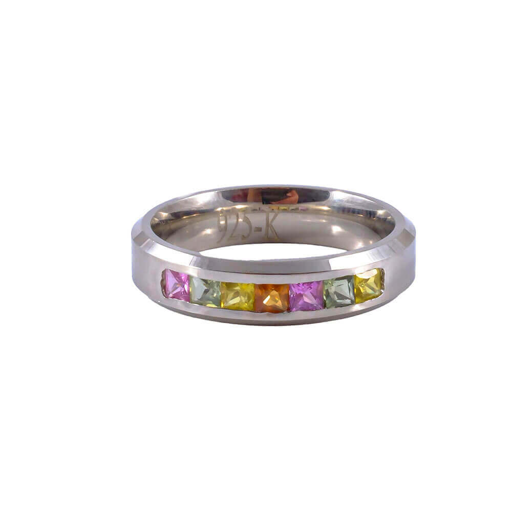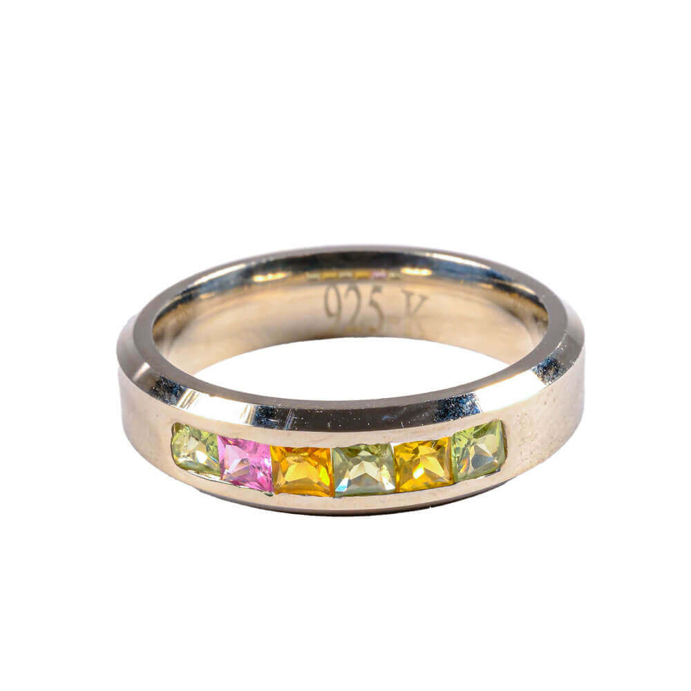 Orjinal Natural Rainbow Safir Doğal Taş Gümüş Bayan Yüzük (3ct)