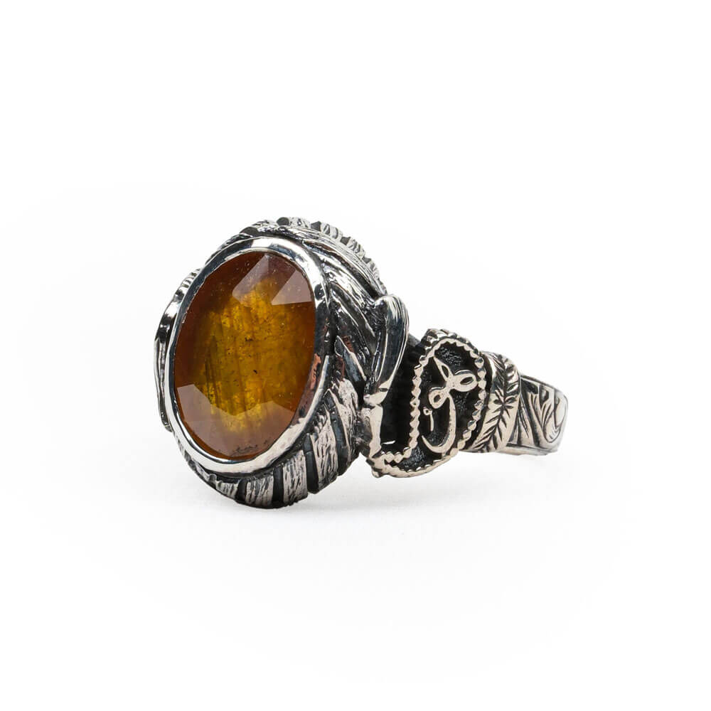Sarı Safir Doğal Taş Gümüş Erkek Yüzük (15ct)