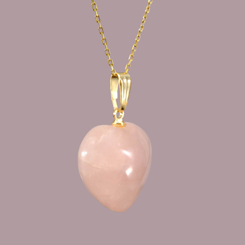 Pembe Kuvars Doğal Taş Metal Kolye (Küçük)