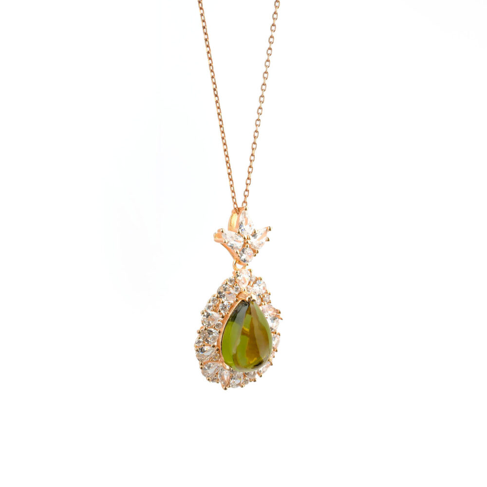Moldavit Doğal Taş Gümüş Rose Bayan Kolye (6ct)