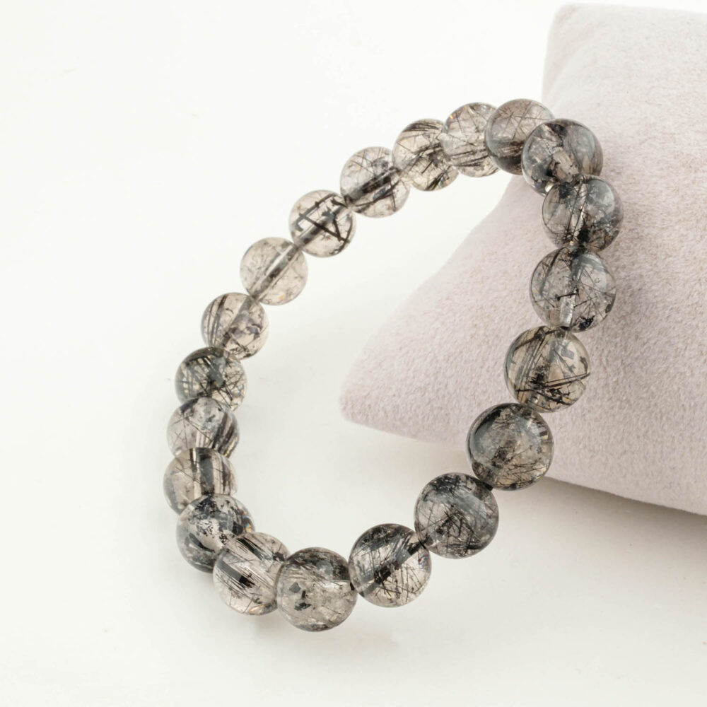 7A+ Kalite Özel Dumanlı Siyah Rutil Kuvars Doğal Taş Bileklik (9-10mm)