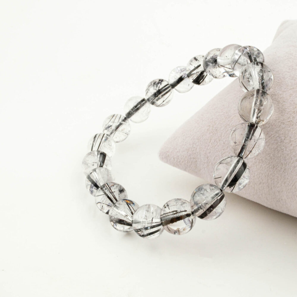 7A+ Kalite Şeffaf İnce Siyah Rutil Kuvars Doğal Taş Bileklik (10-11mm)